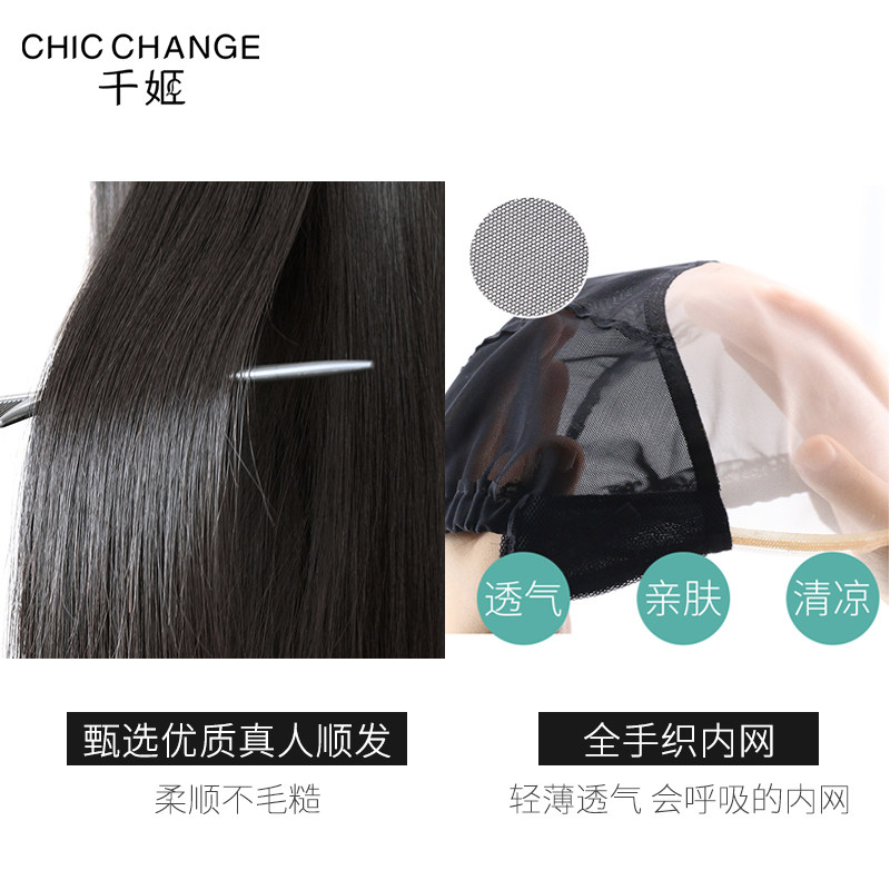 Qianji wig female short hair full head cover type medium long hair net red modeling full true from natural wig set real hair