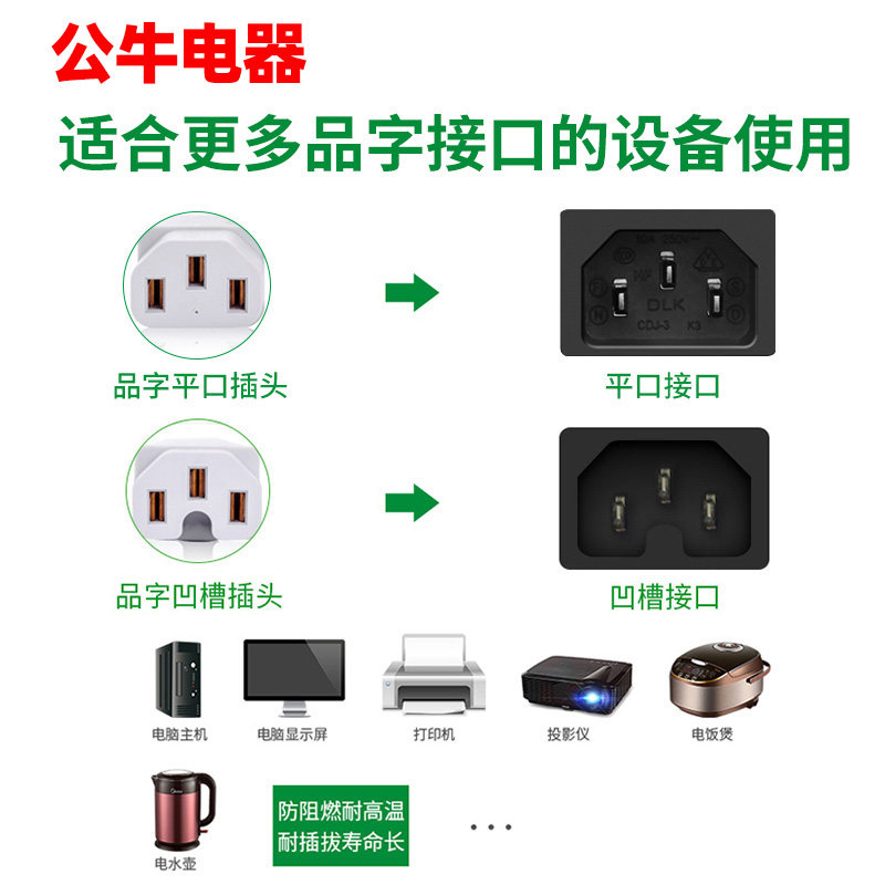 Bull Pint Character Computer Plug Triangle Power Cord 3 Three Feet General Electric electric boiler Boiling Hot Kettle Three Holes with Line