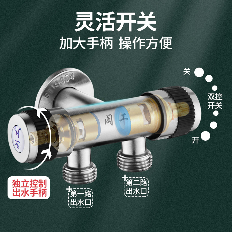 Three-way angle valve, one in and two out taps, double-cut with switch, one minute, two pairs of washing machine water divider triangular valve