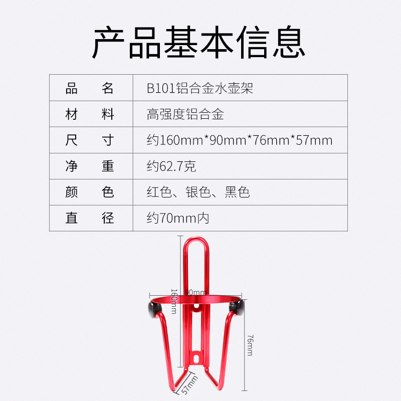 B101 Aluminum Water Bottle Holder - Black (with Tools) B101 Aluminum Alloy Water Bottle Holder - Silver (with Tools) B101 Aluminum Alloy Kettle Racks - Red (with Tools) Kettle Racks - Black (with Tools)