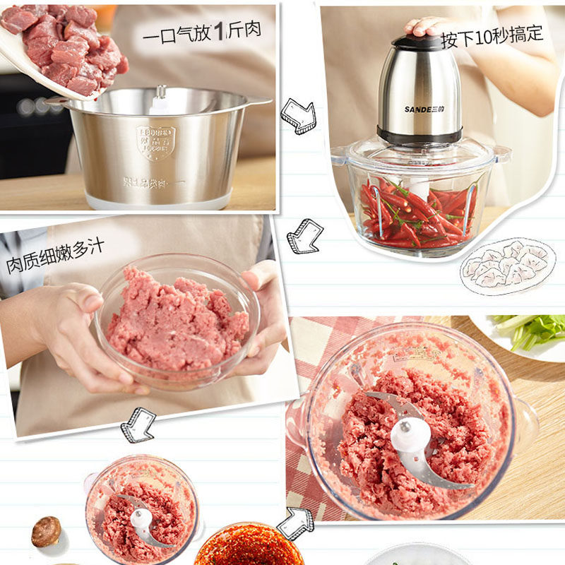 (Quality insured for five years) German quality twisted meat machine Home Electric stainless steel Garlic Hibiscus Cuisine Machine Small Multifunction
