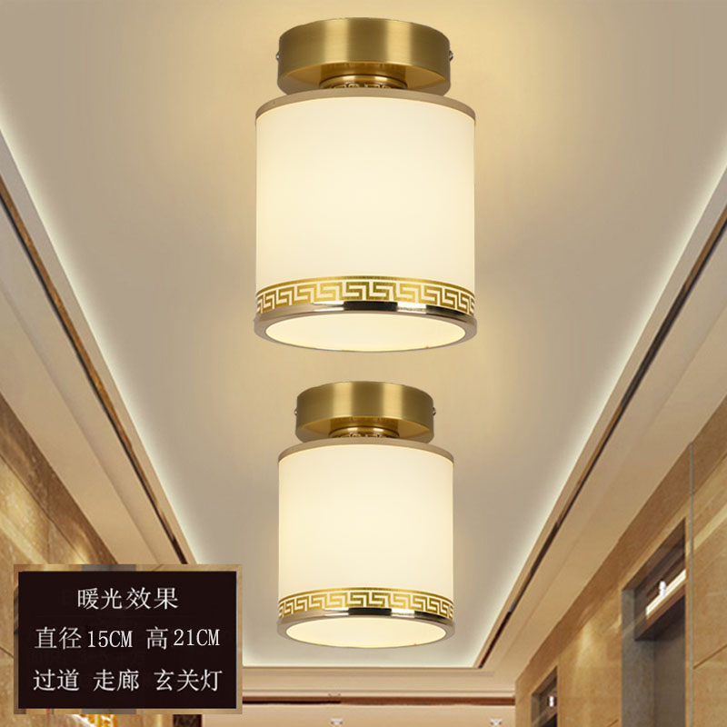 New Chinese all-copper small suction top light corridor Aisle Gangguan Gate Hall Light Brief Modern Balcony Round Glass Lamps-Taobao
