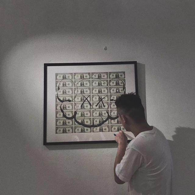 Edison Chen and Shawn Yue of the same style spoof US dollar joint limited edition skeleton dollar painting decorative painting
