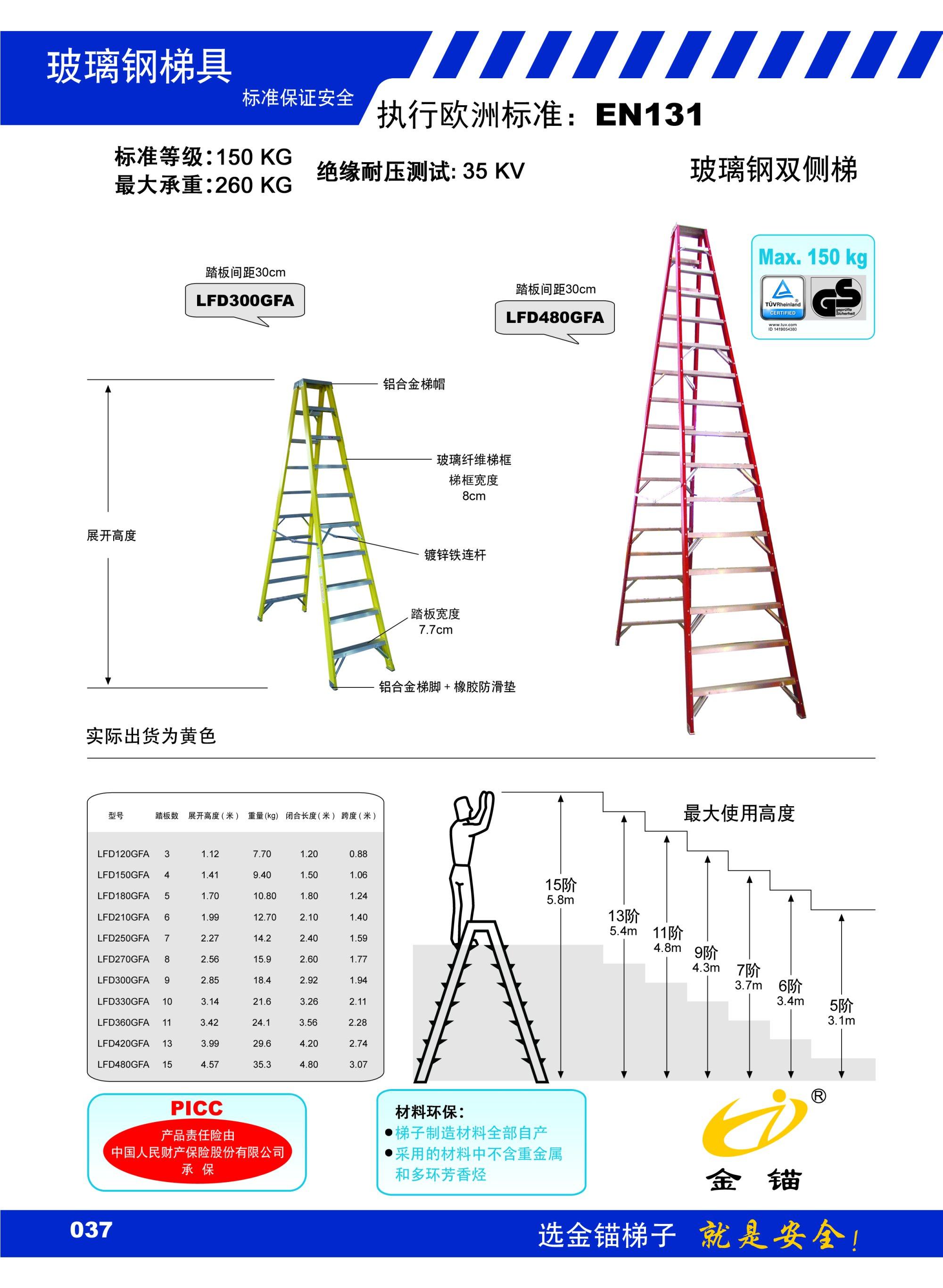 Gold anchor glass fiber double side ladders LFD250GFA LFD250GFA LFD300GFA LFD300GFA LFD330GFA