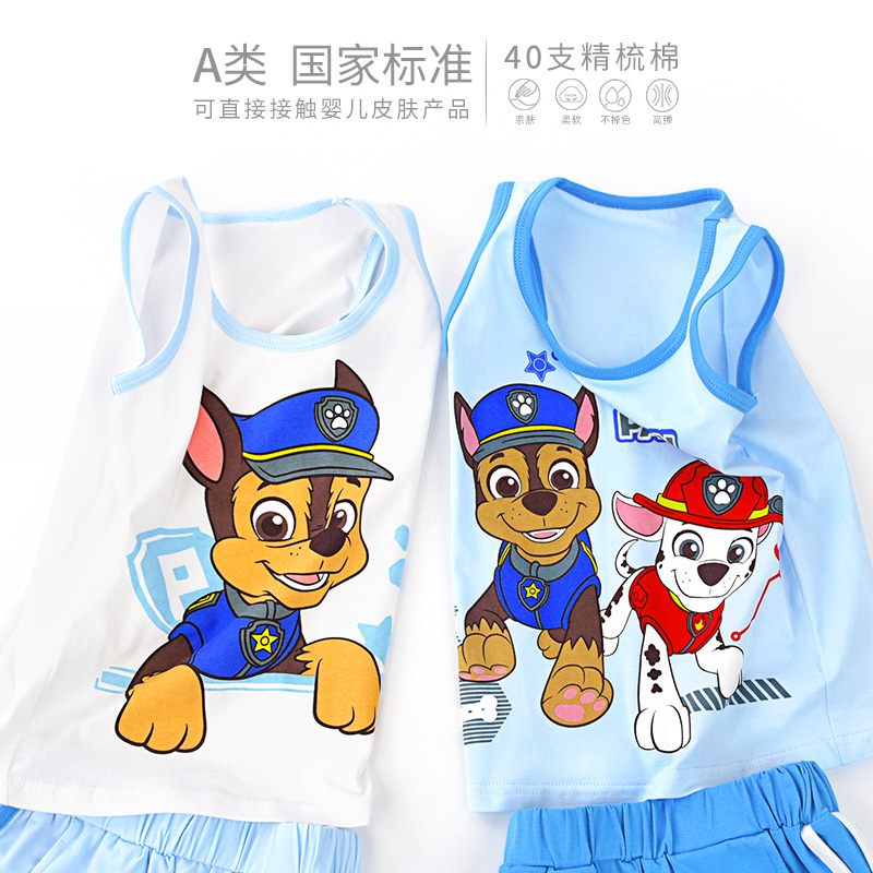 Clearance Wangwang Team Children's Vest Set Boys Pajamas Kids Summer Thin Cotton Baby Home Suit Boys