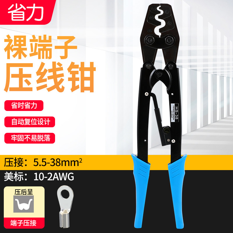 HS-38 bare cold press terminal crimper ratchet type terminal block manual crimp plier 5.5-38 square