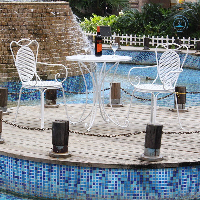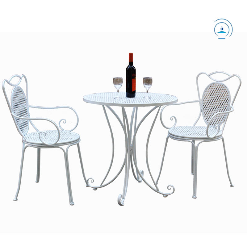 White (one table of two chairs) black (one table of two chairs) ancient bronze color (one table of two chairs) white (one table three chairs) black (one table three chairs) ancient bronze color (one table three chairs) white (one table of four chairs) black (one table of four chairs) black