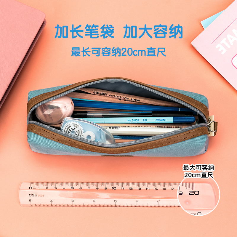 Deli 67030 Morandi color small square bag pencil bag Simple large capacity pencil bag for primary school students canvas pencil bag for junior high school students stationery box three colors optional