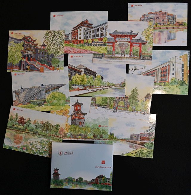 Sichuan University Real view Scenery Hand-painted Scenery Postcard Sichuan Great Ventron Gift gift-Taobao