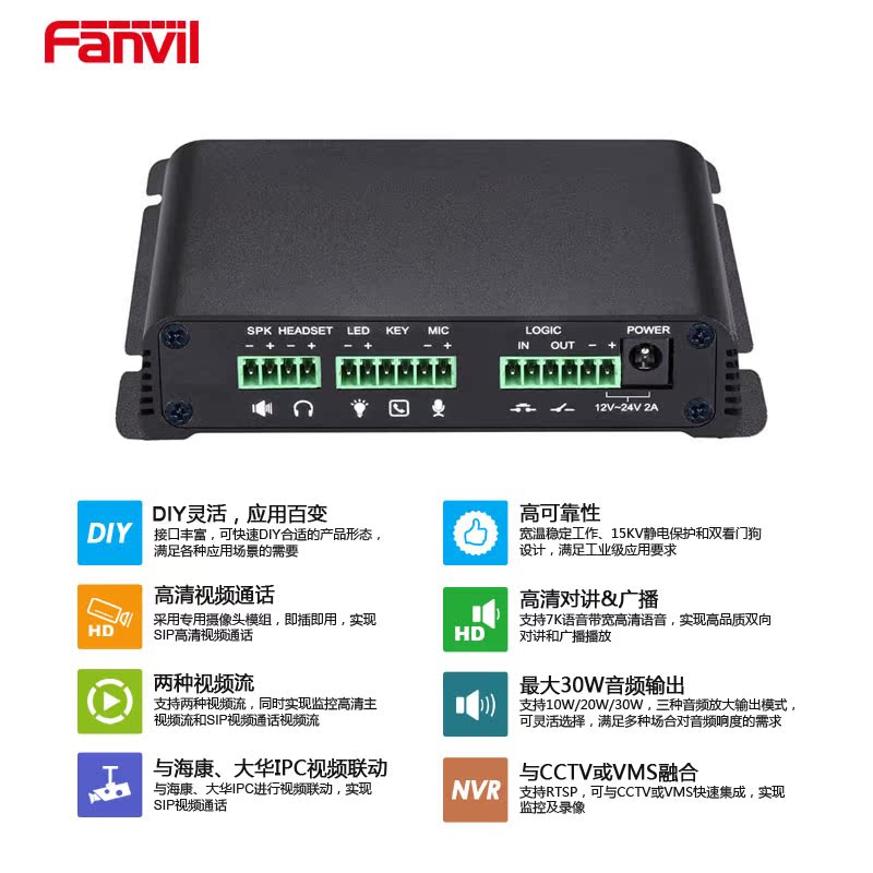 Fanvil orientation PA2 SIP audio and video intercom broadcast gateway security recording call amplification emergency dispatch