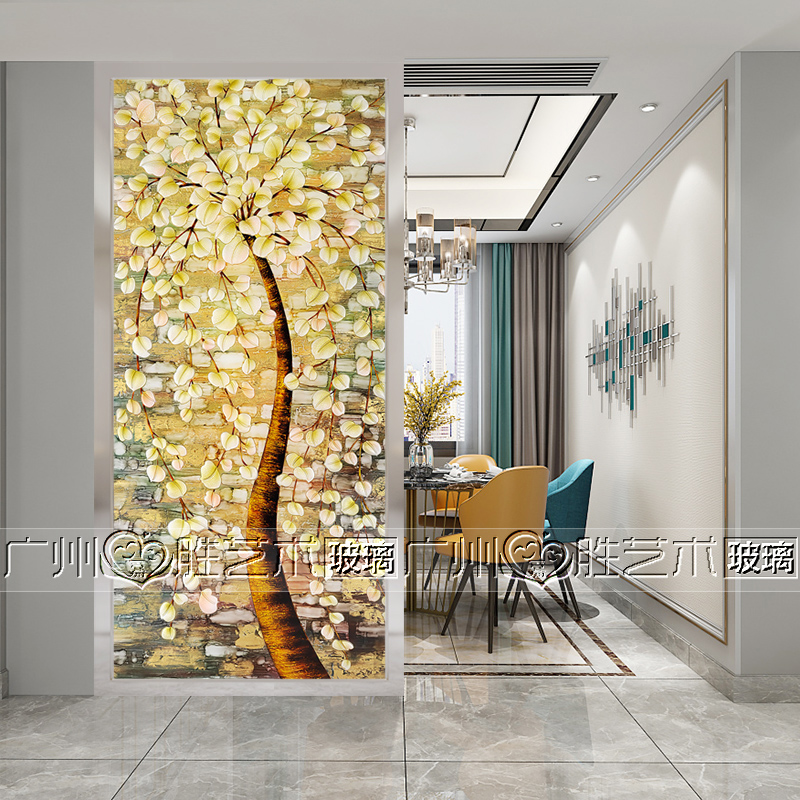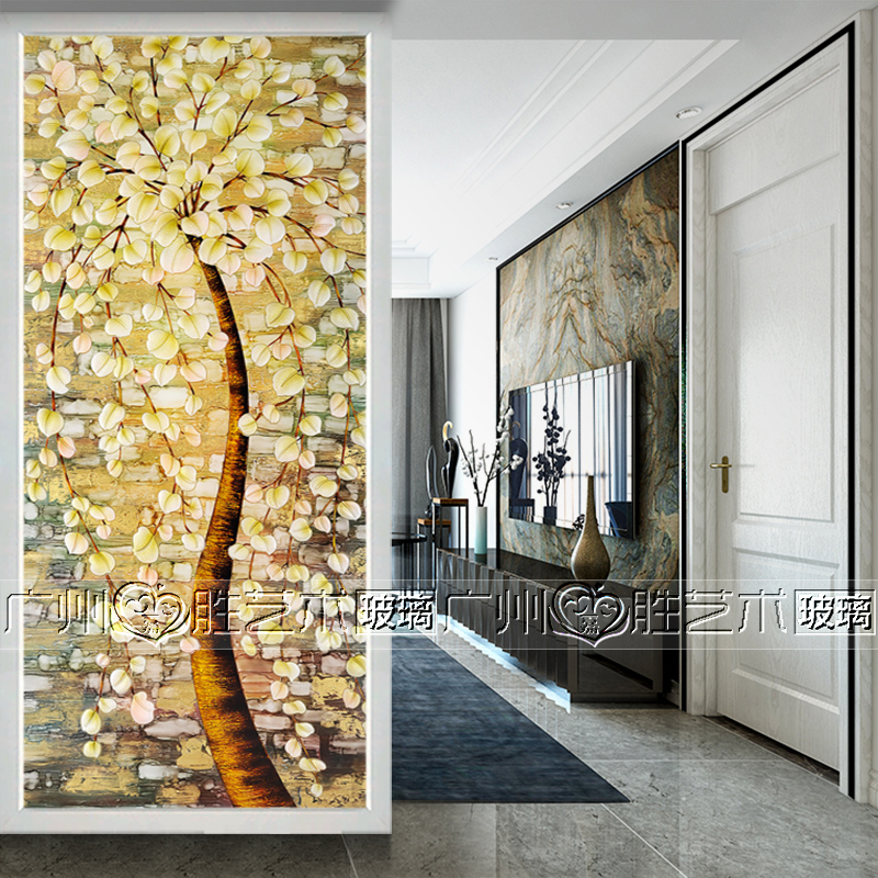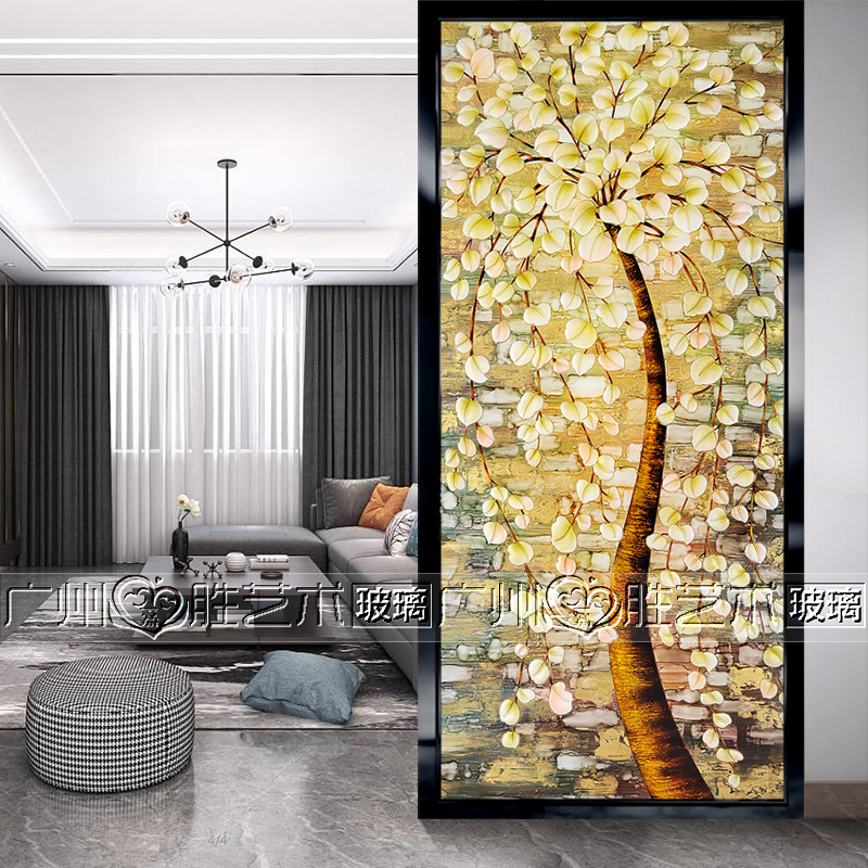 Custom Art Glass Screen Partition Wall Living-room Living Room Entrance Home Xuanguan Frosted Light Transmission Process Double-sided Shoe Cabinet Hair Chaise Tree