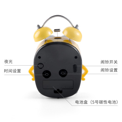 Cartoon Electronic Children's Alarm Clock Students Create Night Light Metal Multi-functional Bedroom Clock with Mute Boy's Bedroom