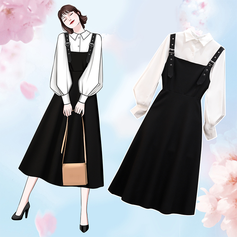 Baby bag skirt girl spring and autumn 2021 new junior high school students Korean version waist slimming dress suit