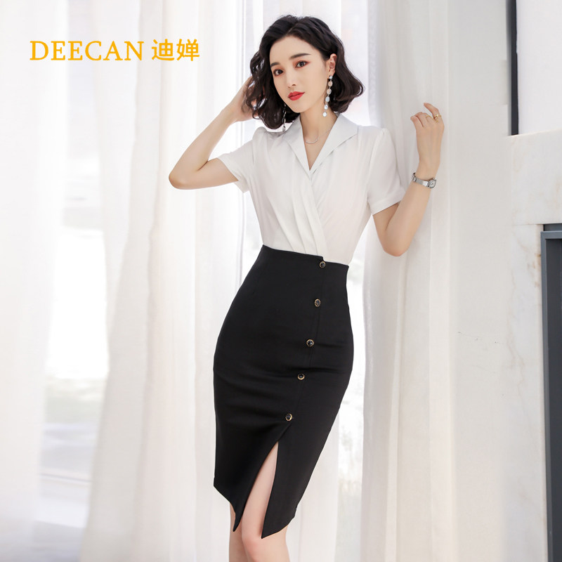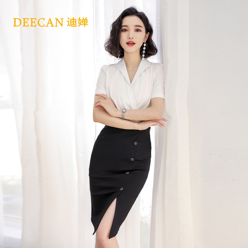 DEECAN fashion name yuan career suit women 2021 new French style net red design feel shirt two sets summer