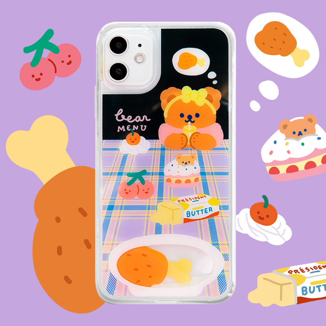 Half-cooked jade bear eat chicken legs Apple xs quicksand mobile phone protective case suitable for iPhone11 cute 7plus cute 8 female