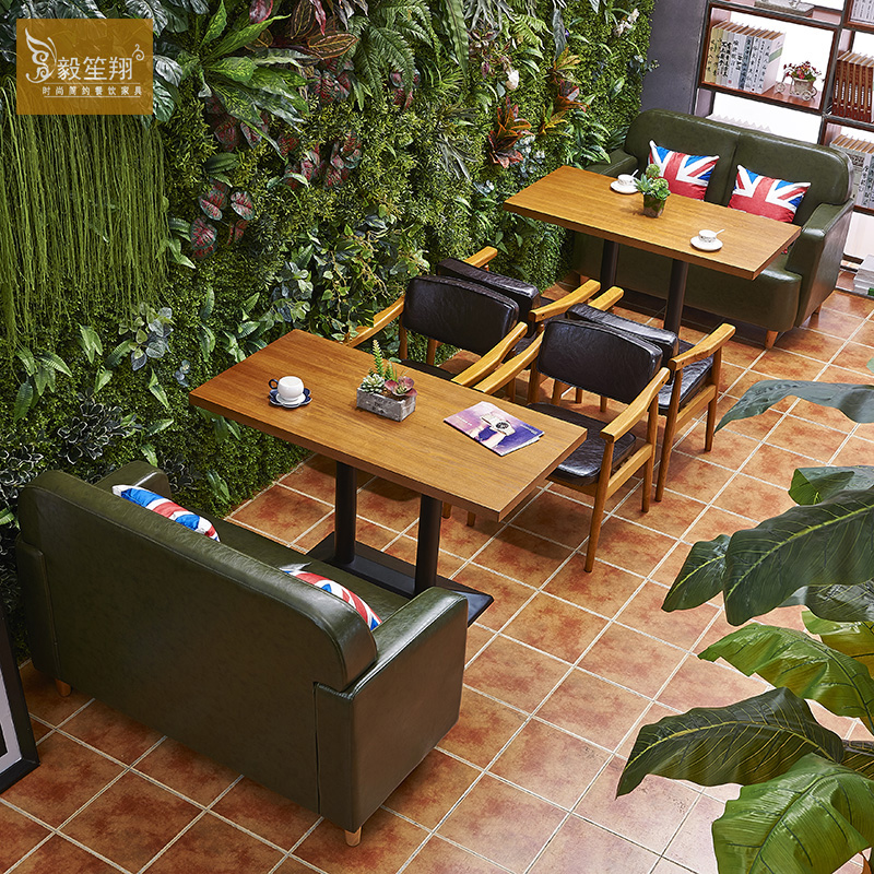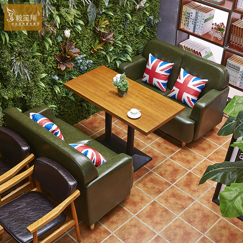 Dark green leather double sofa dark brown leather 168 solid wood chair with veneer 60*60cm square table with veneer 60*120cm long table product does not include shipping {freight consultation customer service}