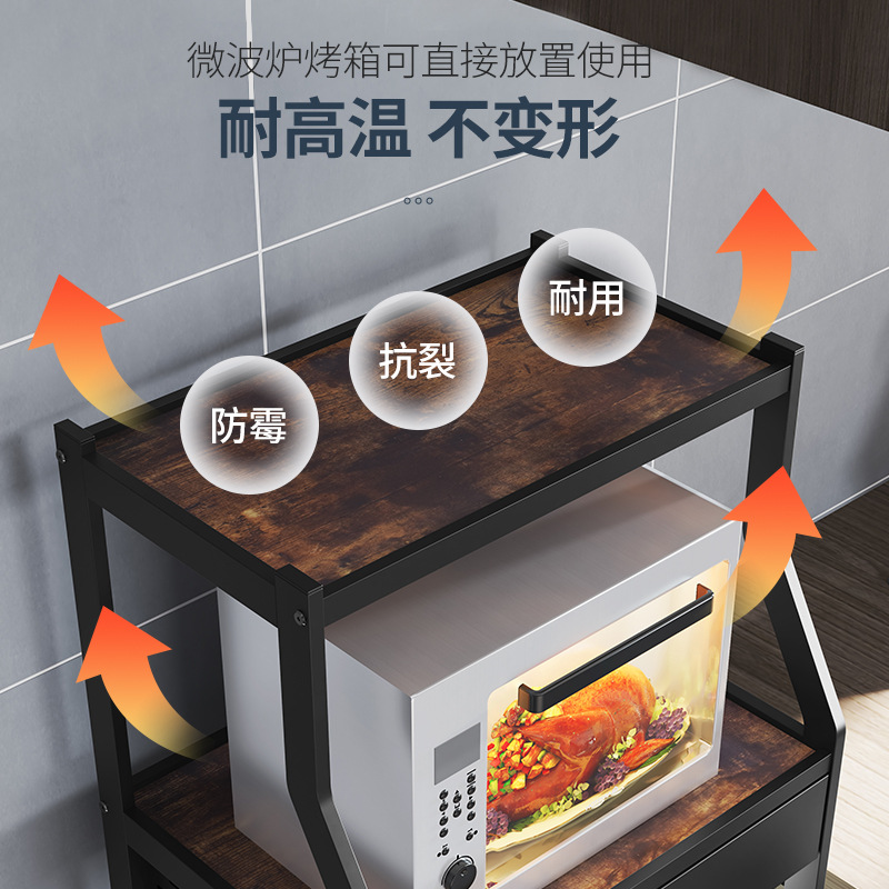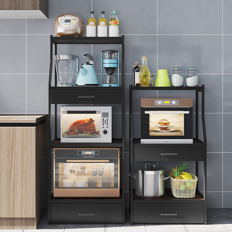 Kitchen Shelve Ground Floor Multilayer Stainless Steel Microwave Oven oven Black Frying Pan Supplies Household large fully-contained shelf