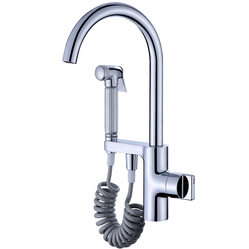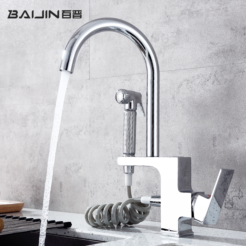 Baijin copper kitchen faucet with spray gun hot and cold vegetable basin faucet sink countertop basin washbasin telescopic