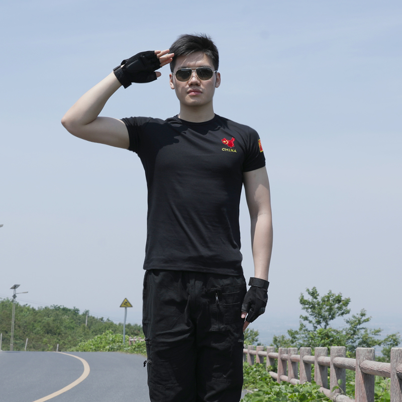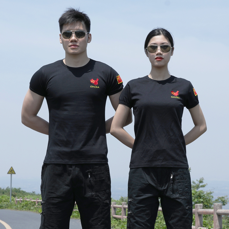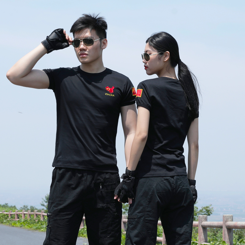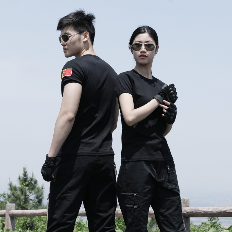 Summer outdoor camouflage fitness suit wear-resistant cotton thin military fan field coveralls short sleeves quick-dry T - shirt