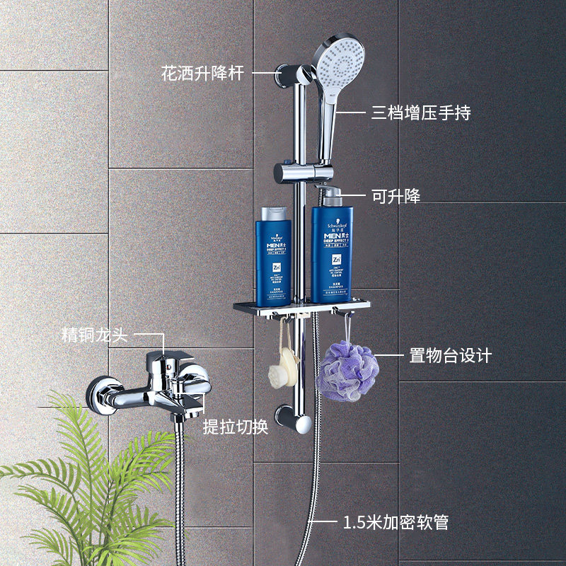 Shower full copper set Household wall-mounted square faucet Booster hand-held bath powder room rain nozzle