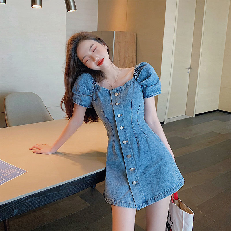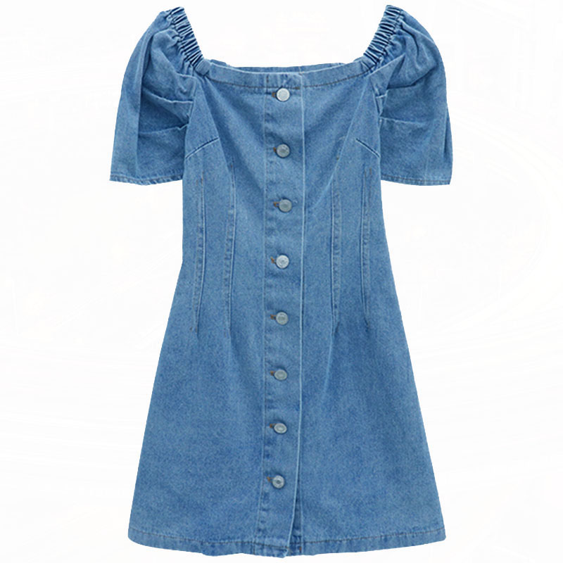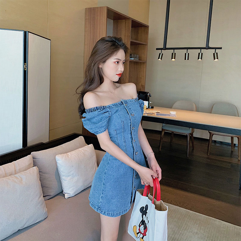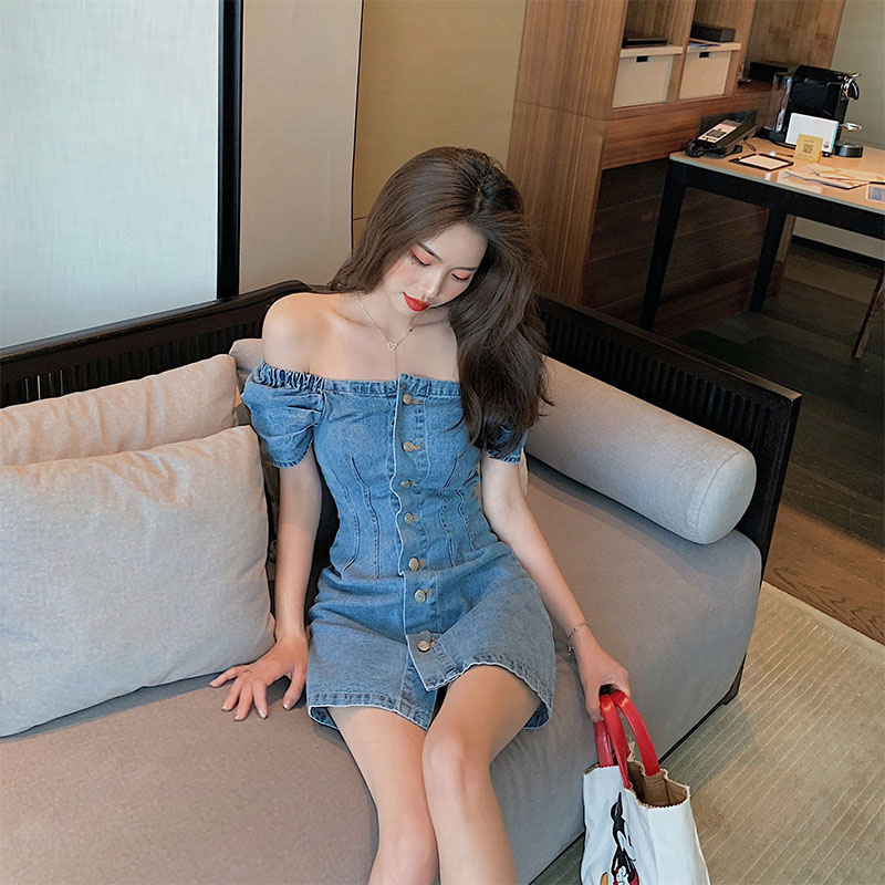 Straight Shoulder Ocean Dress 2022 New Goddess Fan Temperament Little Sub Woman Dress Summer Dress Slightly Fat Wearing a Cowboy Dress