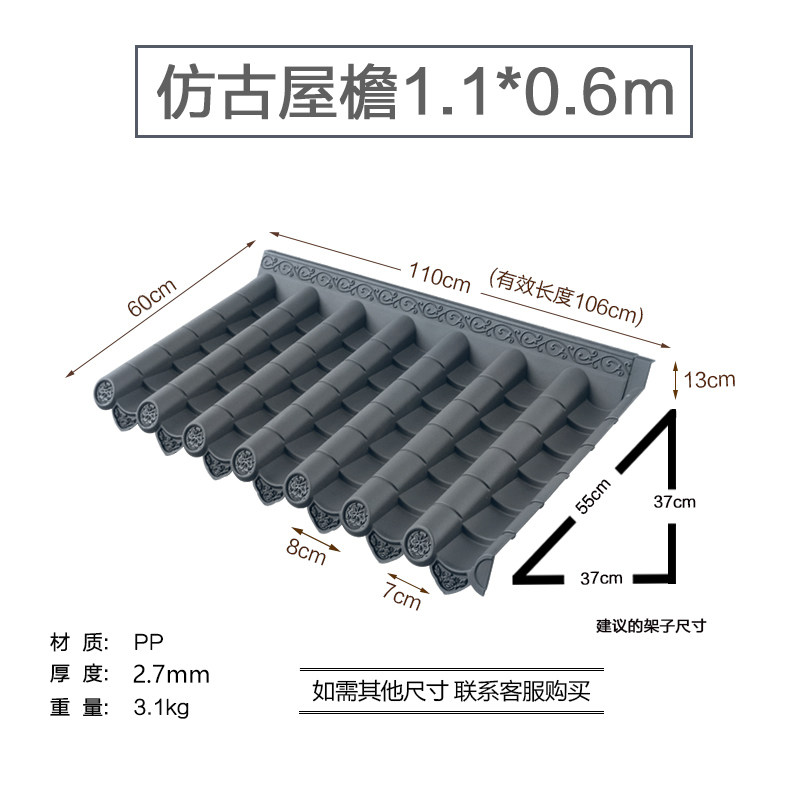 110 * 60cm integrated antique tile plastic retro rain hitch new Chinese style house eatery snack car resin ceiling connected body