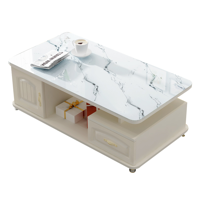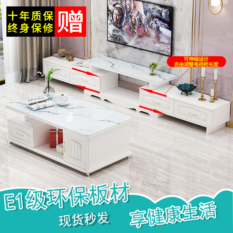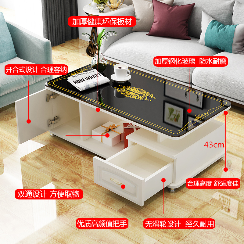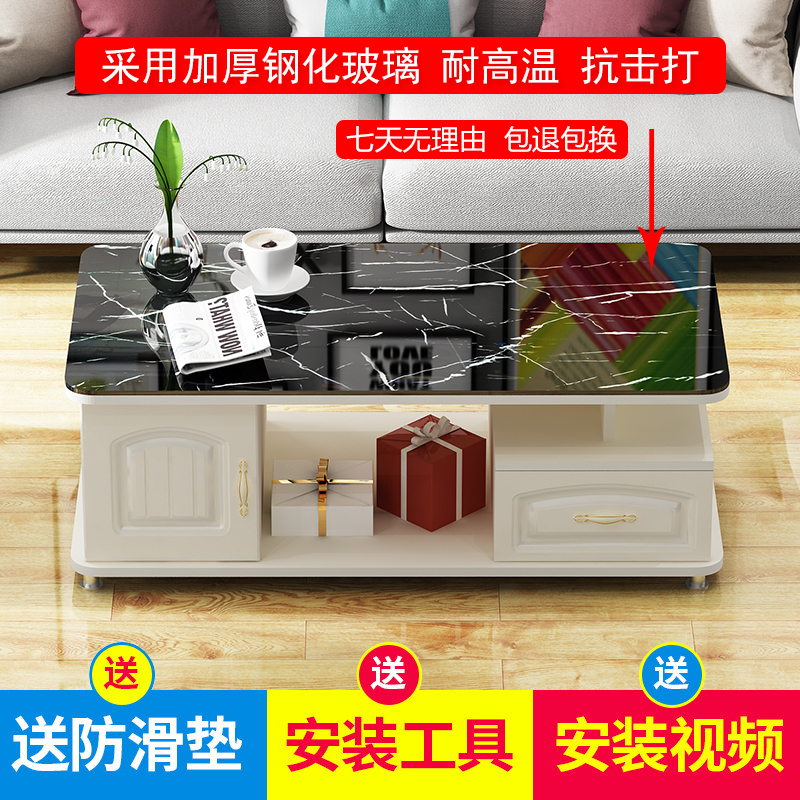 Tea table small family type simple tempered glass TV cabinet marble combined modern living room minimalist for home tea table