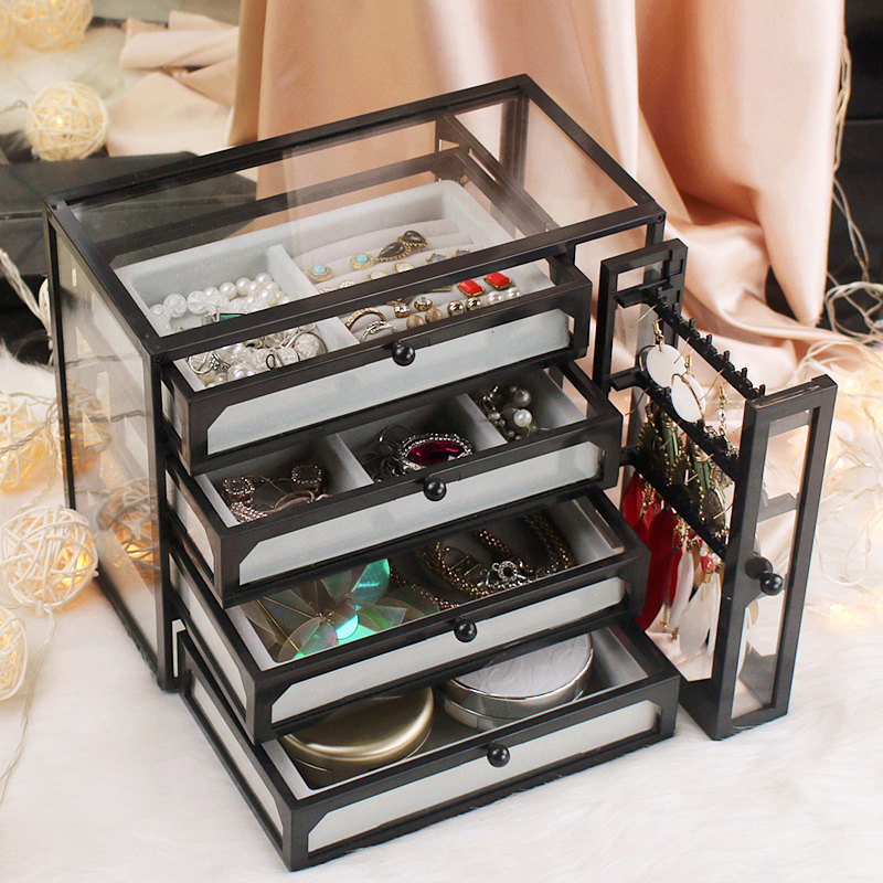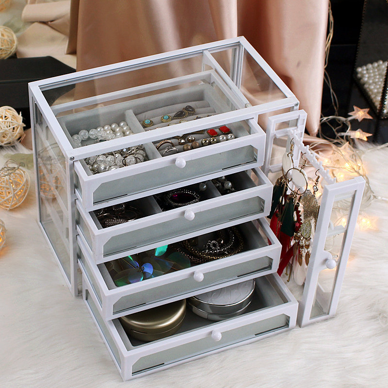 Net Red Glass Jewelry Storage Box Desktop Drawer Watch Princess Ear Pin Earrings Ring Necklace Jewelry Display Stand