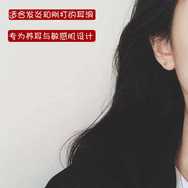 Golden bean ear nails female silver sleeping without picking 925 silver and anti - allergic K - ear nails