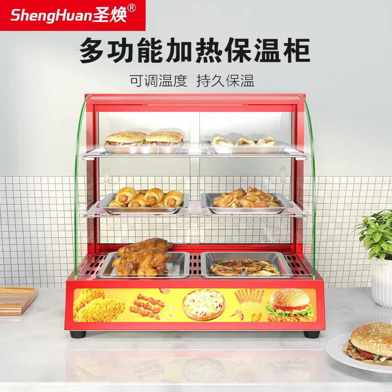 Shenghuan food insulation cabinet heating constant temperature commercial desktop fried chicken burger fried chicken cooked food insulation display cabinet small