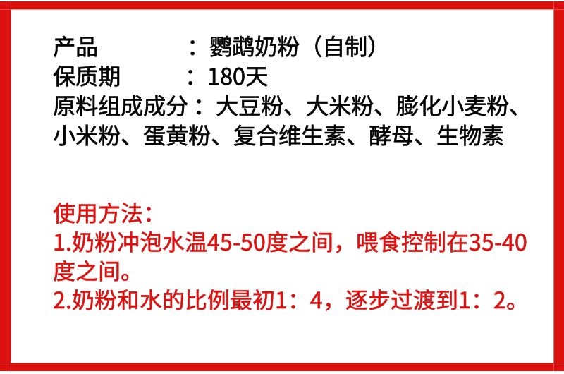 Parrot small bird special milk powder parrot milk powder 250g parrot BB milk powder tiger skin peony Xuanfeng low-fat milk powder