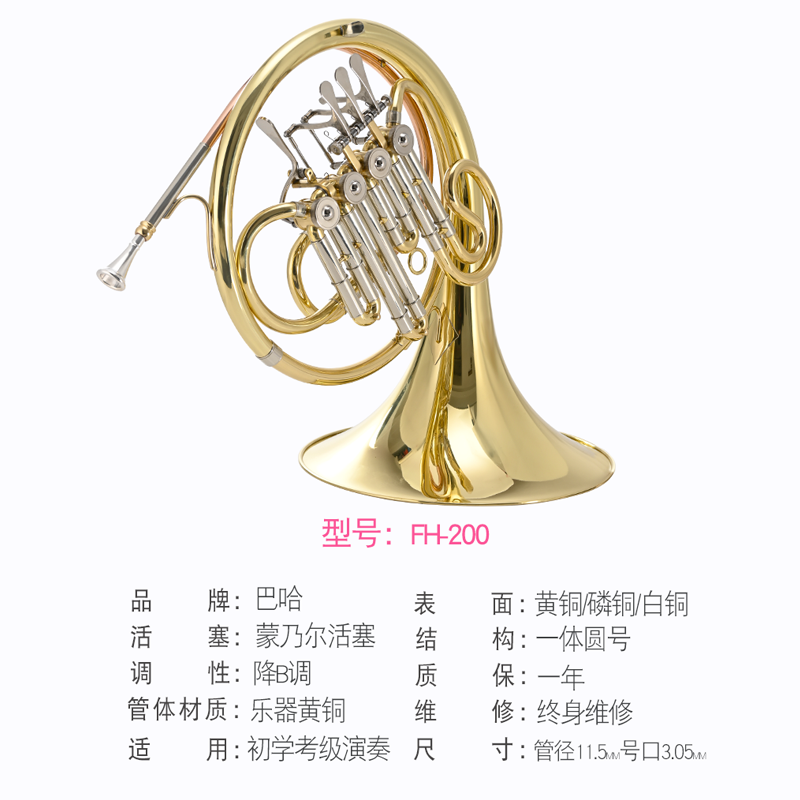American Baja B-tone single-row double-row French horn B F-tone three-color one-piece French horn Primary examination examination band