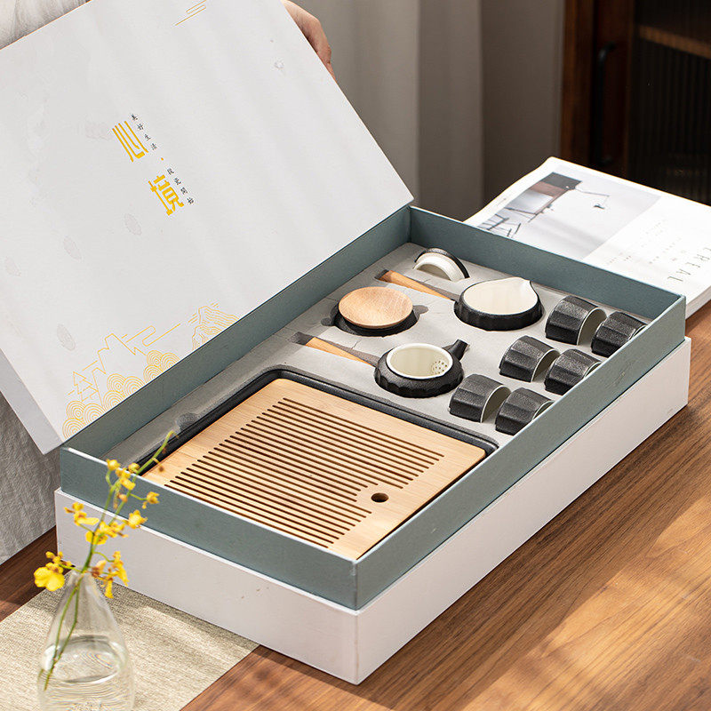 Yongjing Ju side handle pot Ceramic Kung Fu tea set Household simple Japanese water storage tea tray Tea cup High-grade gift box