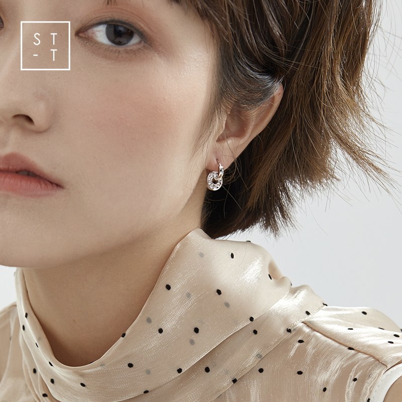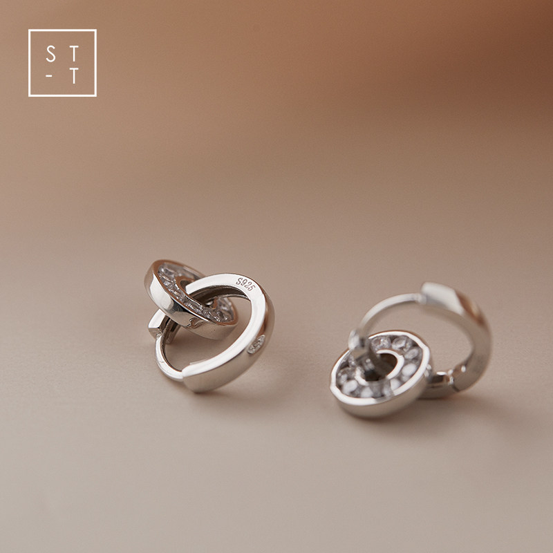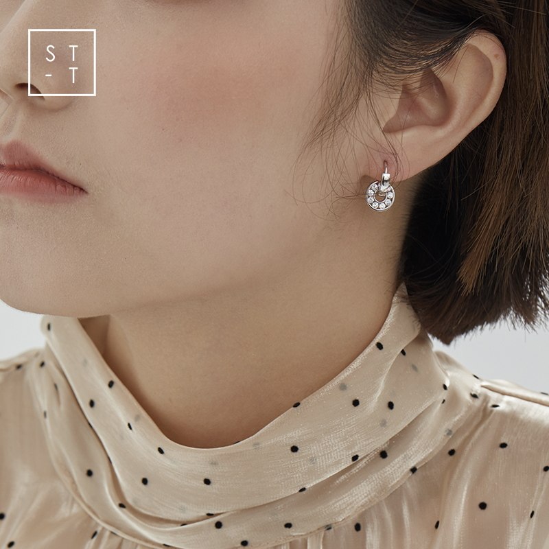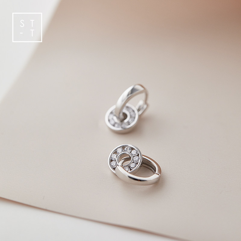 Mrs. Shen S925 sterling silver Korean style simple round pendant glossy ear buckle female student personality fashion creative earrings