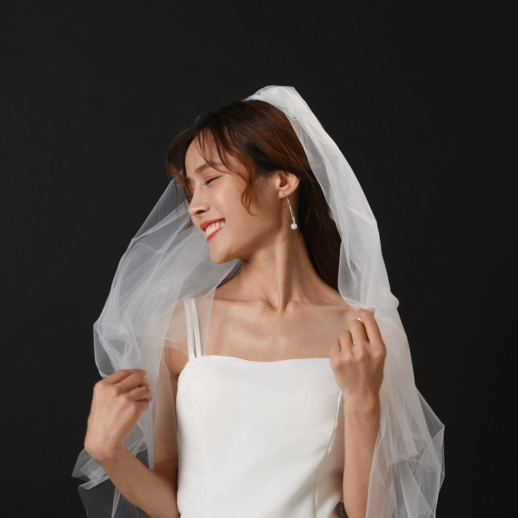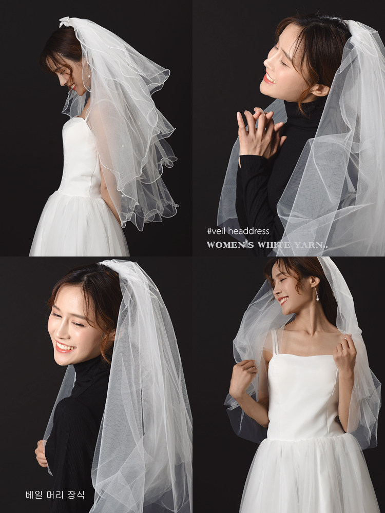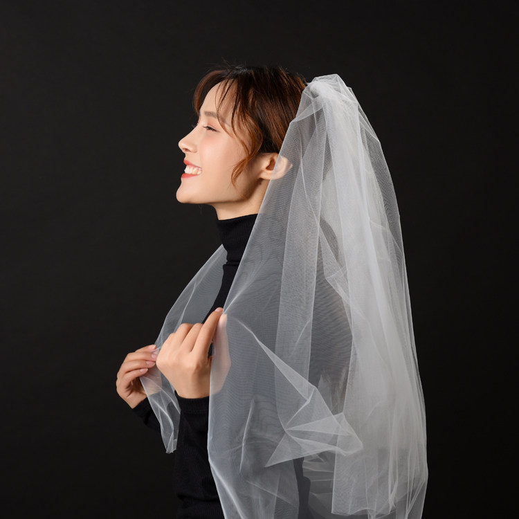 Head bride dress girl tied white yarn net red photography props simple photography background cloth to take picture veil
