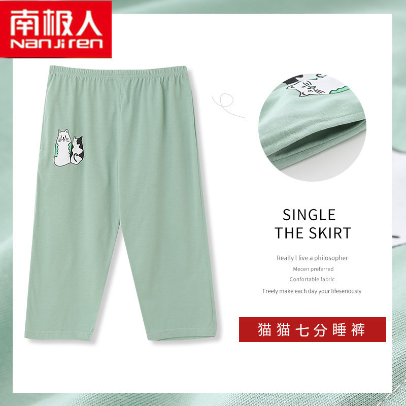 South Pole Man Single Piece Pure Cotton Sleeping Pants Woman Summer Short Seven Pants Slim loose large size Size Home Pants Full Cotton 200 Catty 7