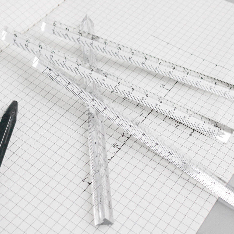 Minimalist creative student Mapping ruler Mitsubishi ruler transparent ruler 15CM stereo triangular ruler graduated scale resistant to fall