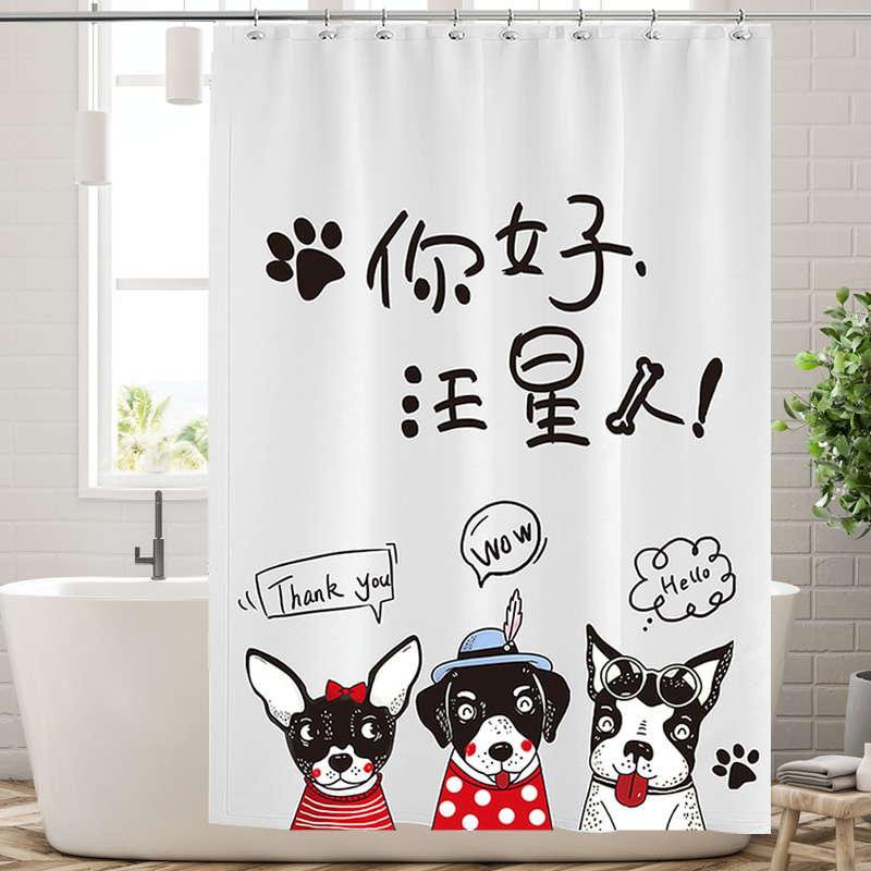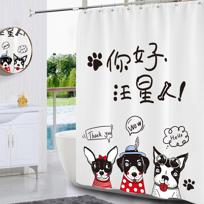 Creative Bathroom Bath Curtain Suit Free of punch toilet Cartoon waterproof cloth mildew-proof thickened bath Curtain Door Curtain-Taobao