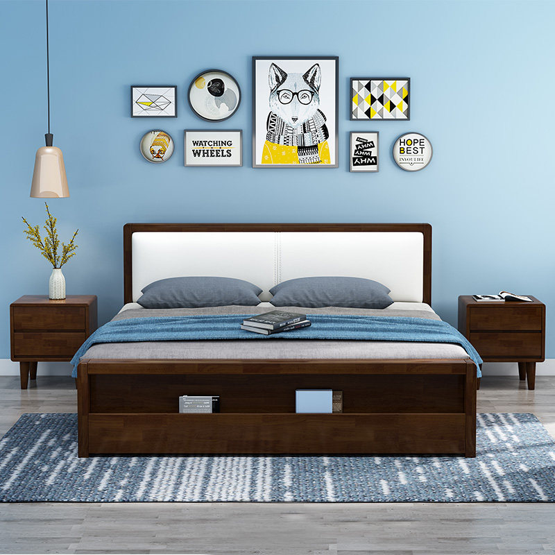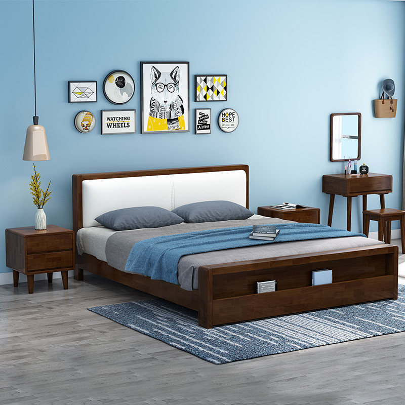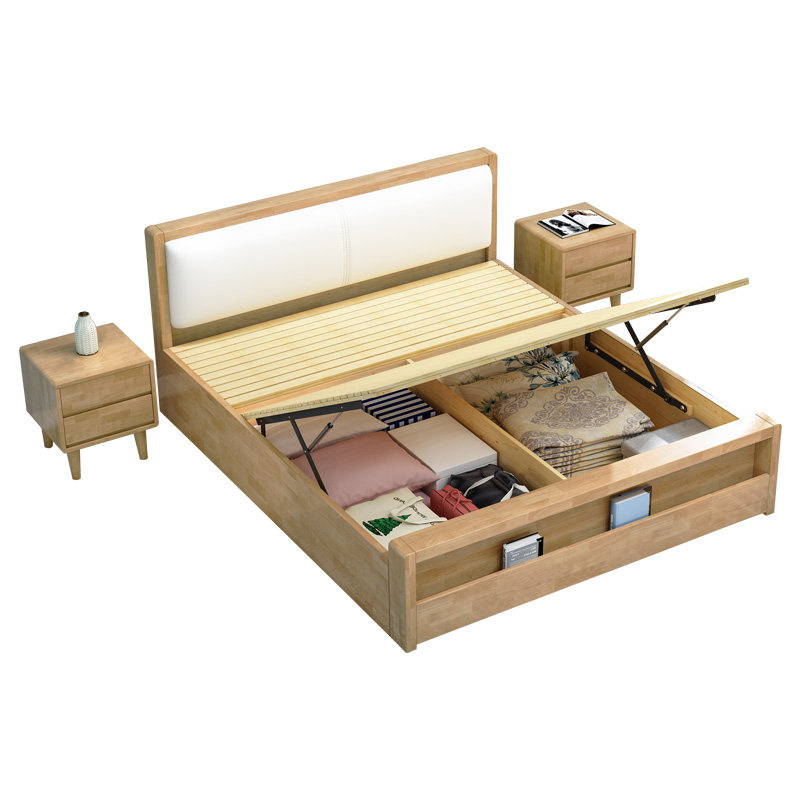 Solid wood bed master bedroom Nordic double bed modern simplicity 1 8 meters single 1 5 meters all solid wood air pressure storage marriage bed