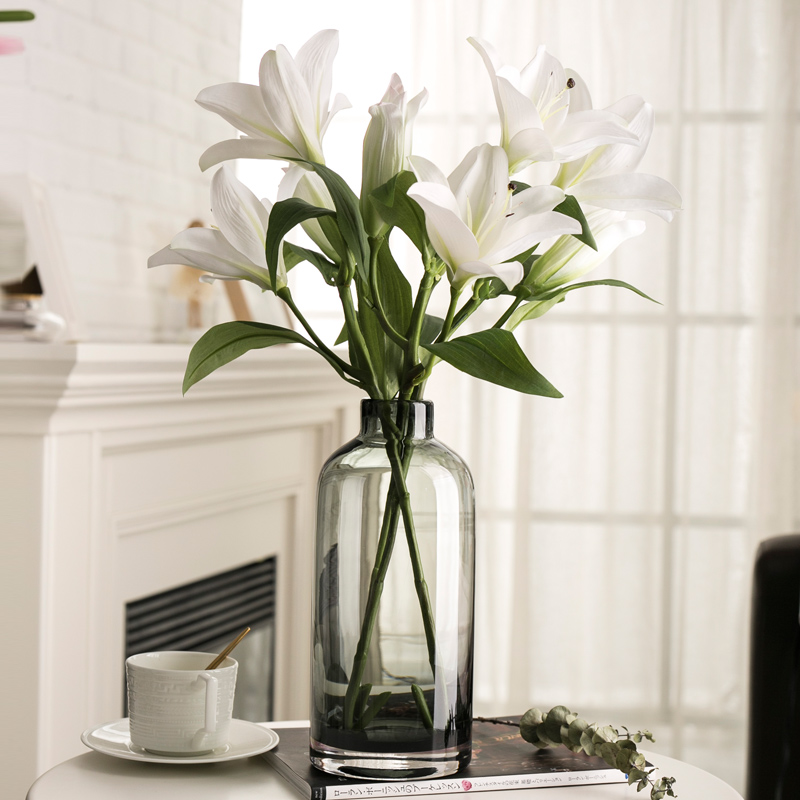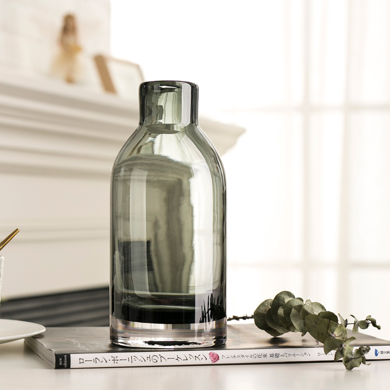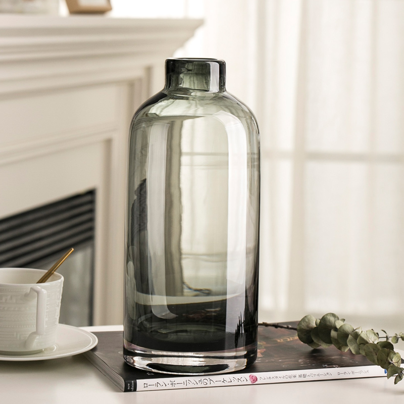 Large European-style retro living room flower arrangement vase transparent glass flower dried flower vase light luxury decoration ornaments ins
