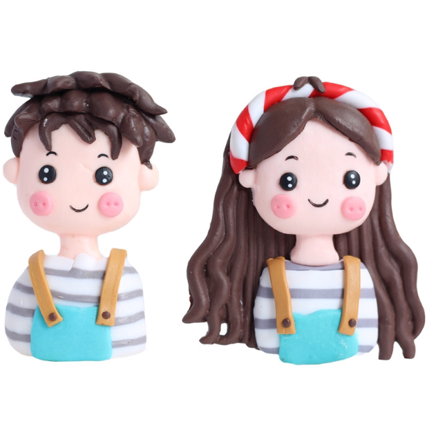Net Red Cake Decoration Pendulum 7 New Year's Valentine's Day Couple cake Decorative Soft Pottery Plug-in Girl Boy Swing