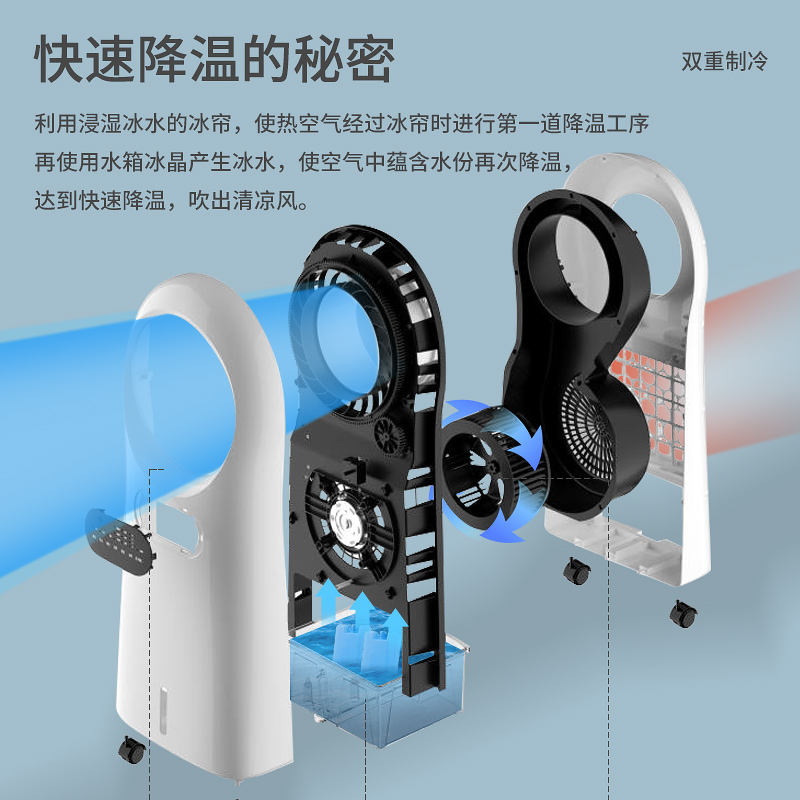 Ox Air Conditioning Fan No Leaf Home Cold Blower Water Cooling Small Air Conditioning Mobile Dormitory Freezer Small Cold Fan