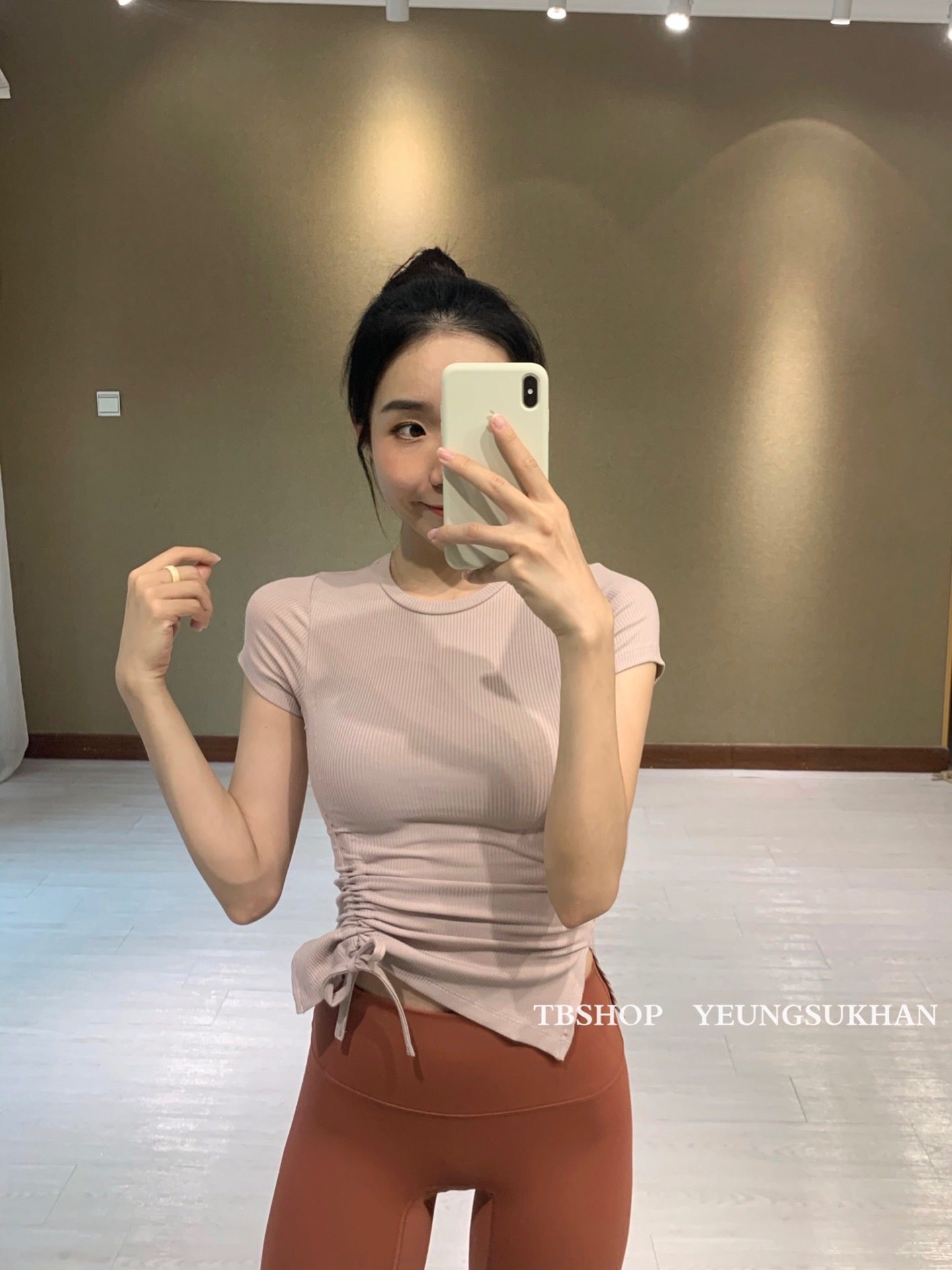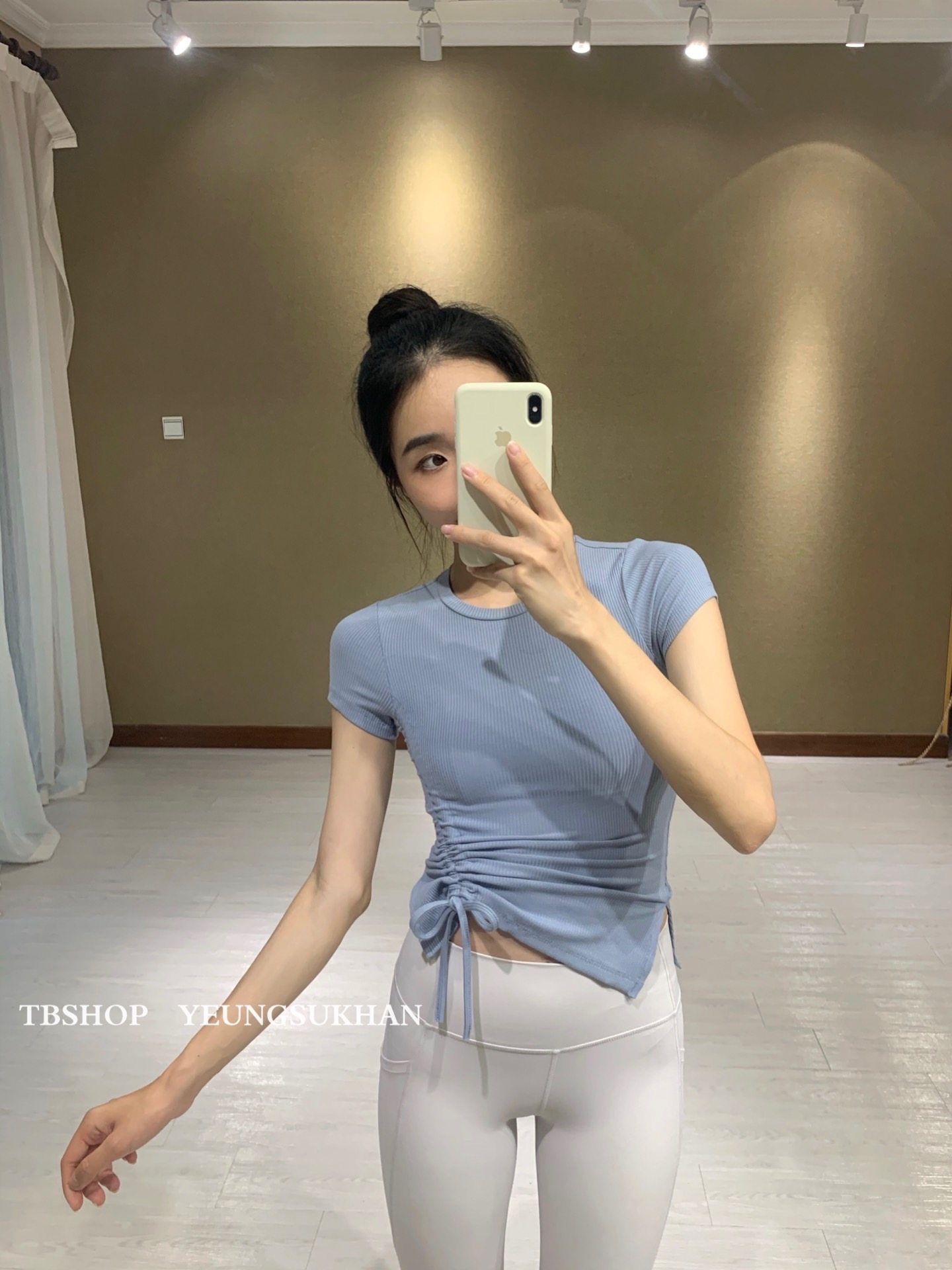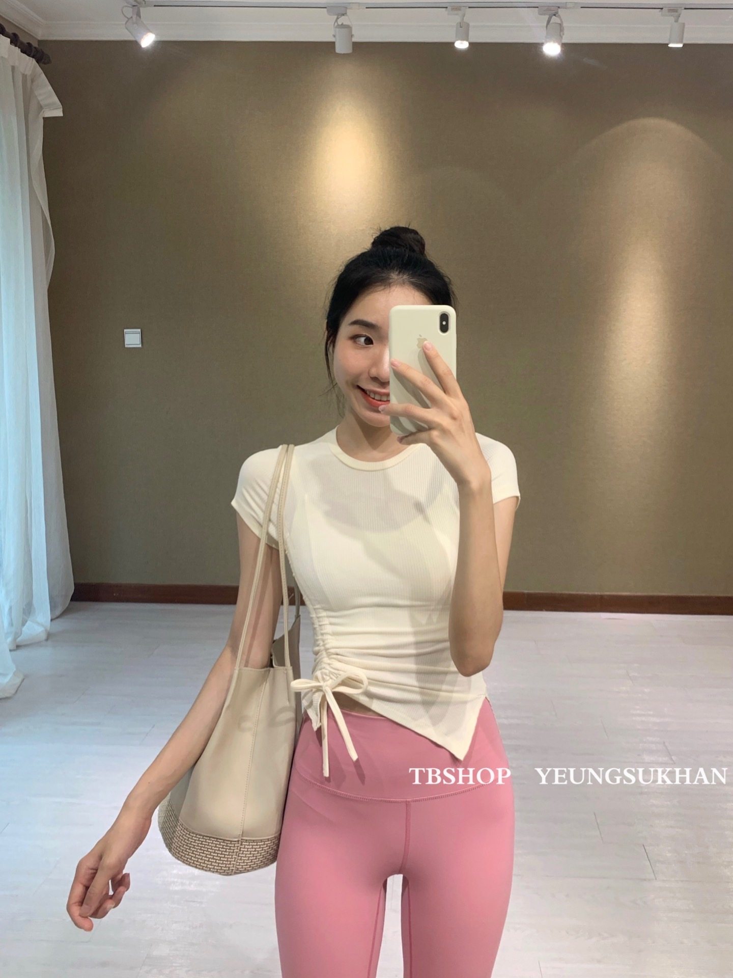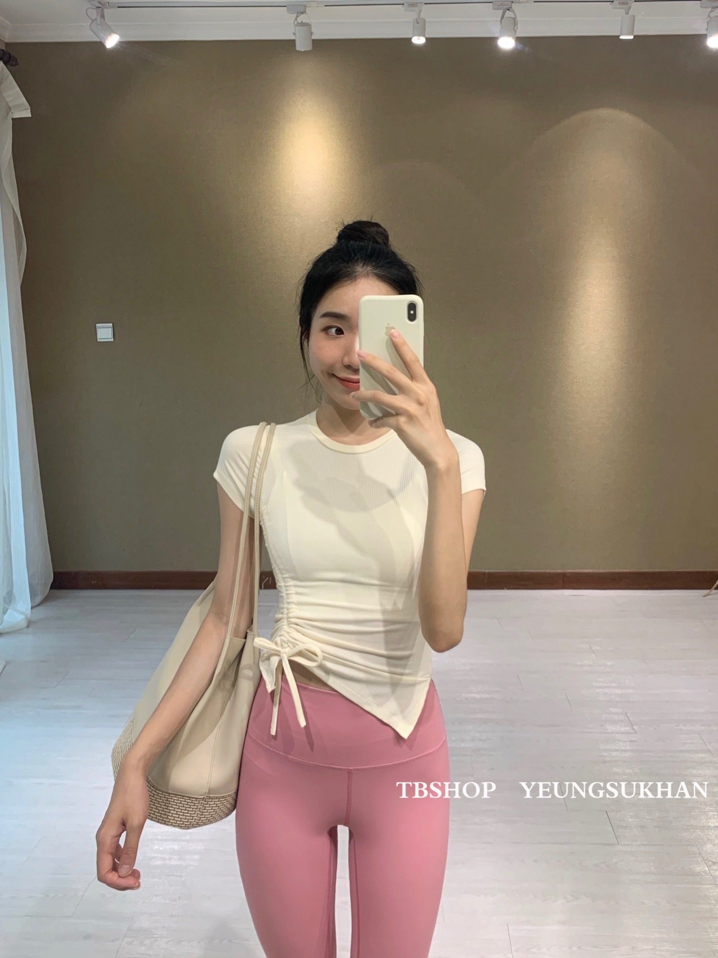 YEUNGSUKHAN drawstring thread blouse*Korean drama heroine wears yoga fitness outside wearing sports short sleeves