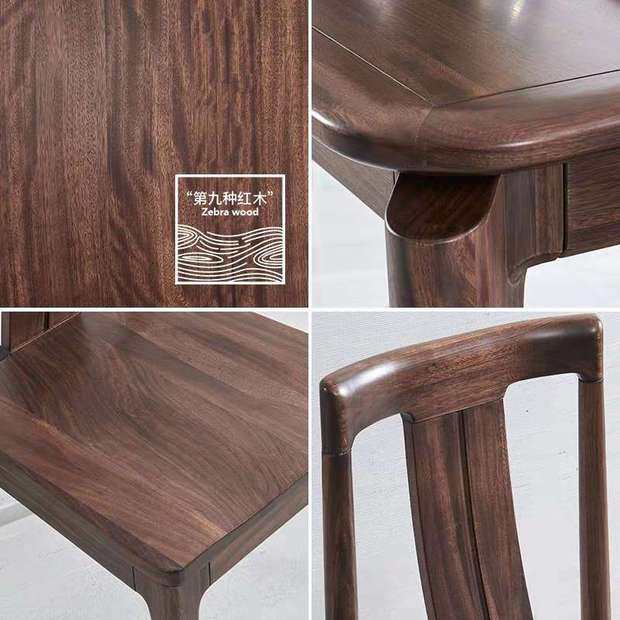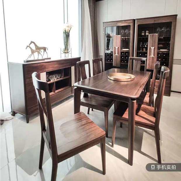 Bluebird home innate gold wood New Chinese full solid wood long dining table and chairs modern light lavish dining table 1 5 m table XYUE