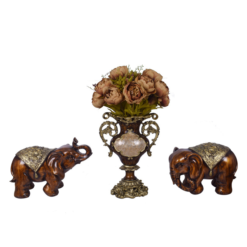 Classical elephant A pair of vases 3 bunches of brown peony Classical auspicious elephant a pair of lotus pond moon ornaments Classical auspicious elephant a pair of large decorative plates Classical elephant a pair of vases 8 bunches of mixed-color sky