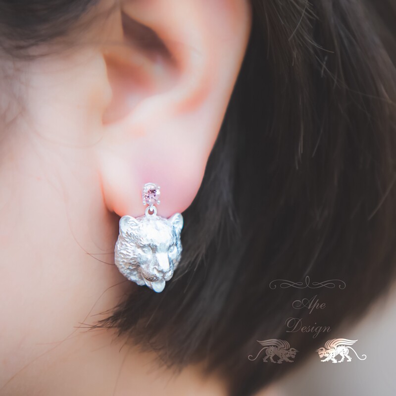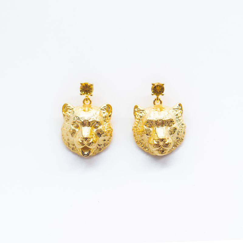 Snow Leopard Photo Style Copper Tire Silver Plated Gold Plated Tourmaline Earring Pin Earring