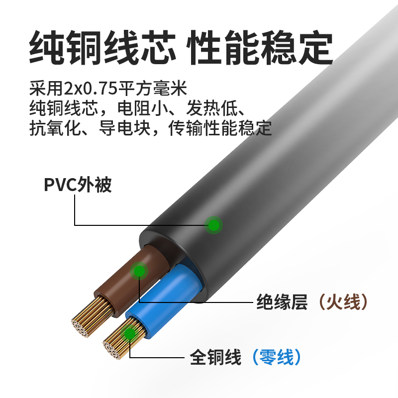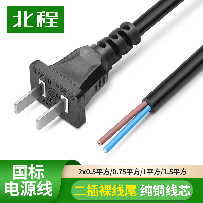 2 plug national standard single-head power cord plug 2 core 1 5 square two with plug 2 hole 2 pin bare wire 3C certification