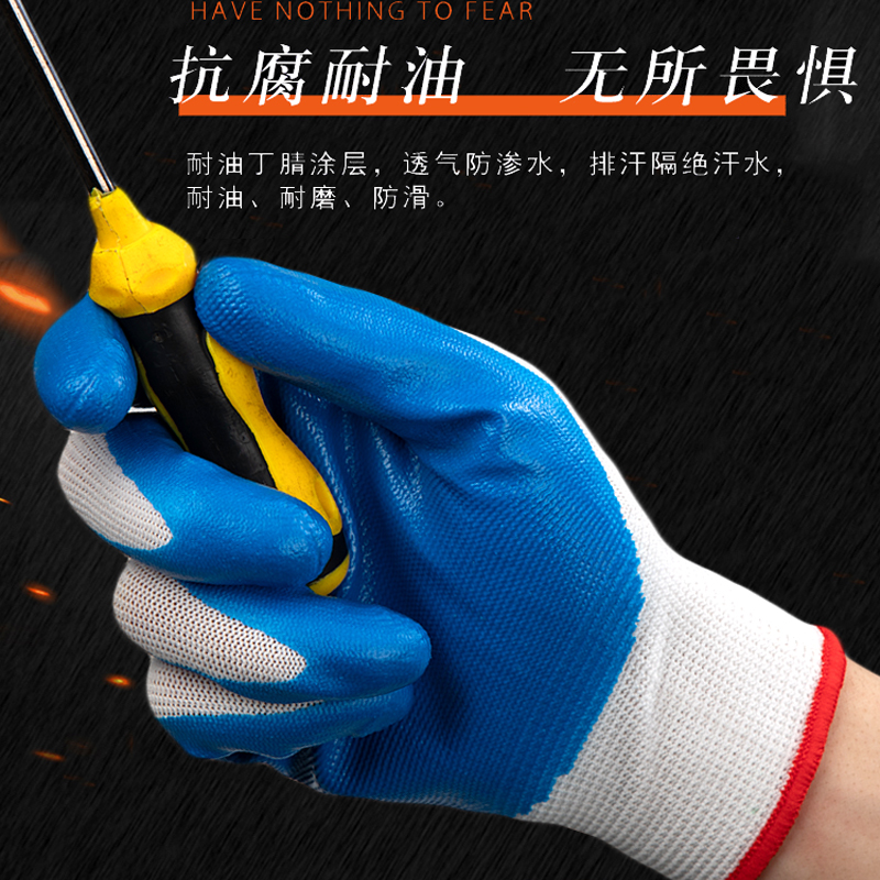 Guofeng labor insurance work rubber wear-resistant non-slip dipping waterproof construction site work plastic nitrile labor rubber gloves