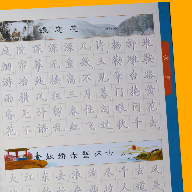 Block letter practice copybook adult regular script college students primary school students junior high school students high school students ancient poetry copybook practice calligraphy concave word groove fountain pen italic primary school children adult hard pen groove quick practice calligraphy book