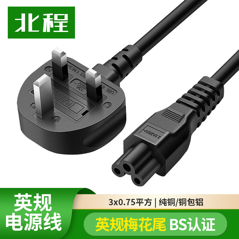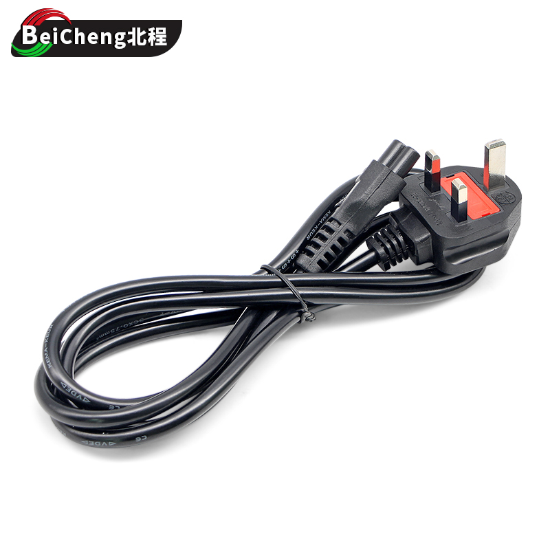 British-style British-style notebook adapter power cord plum tail three-hole full copper wire core with insurance tube 1 8m